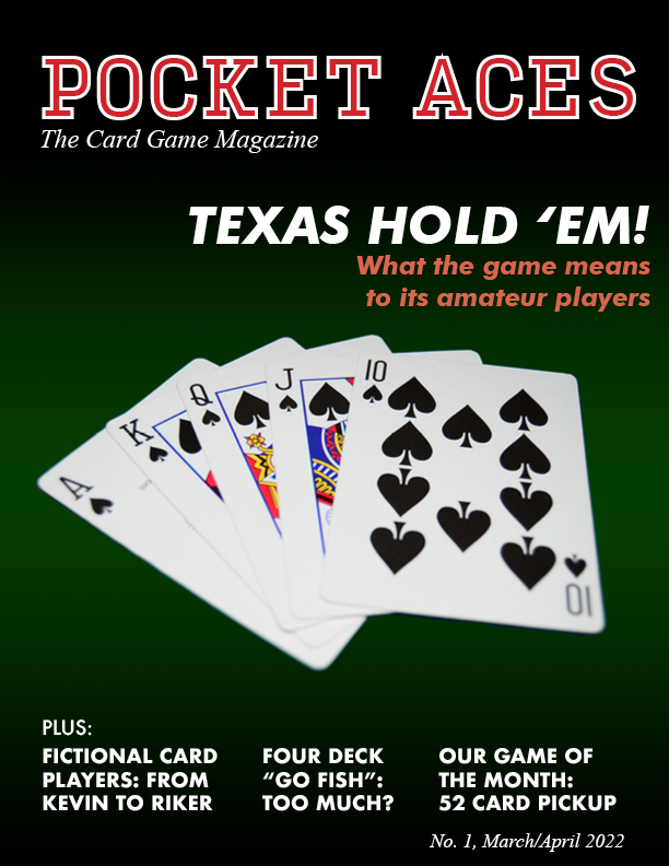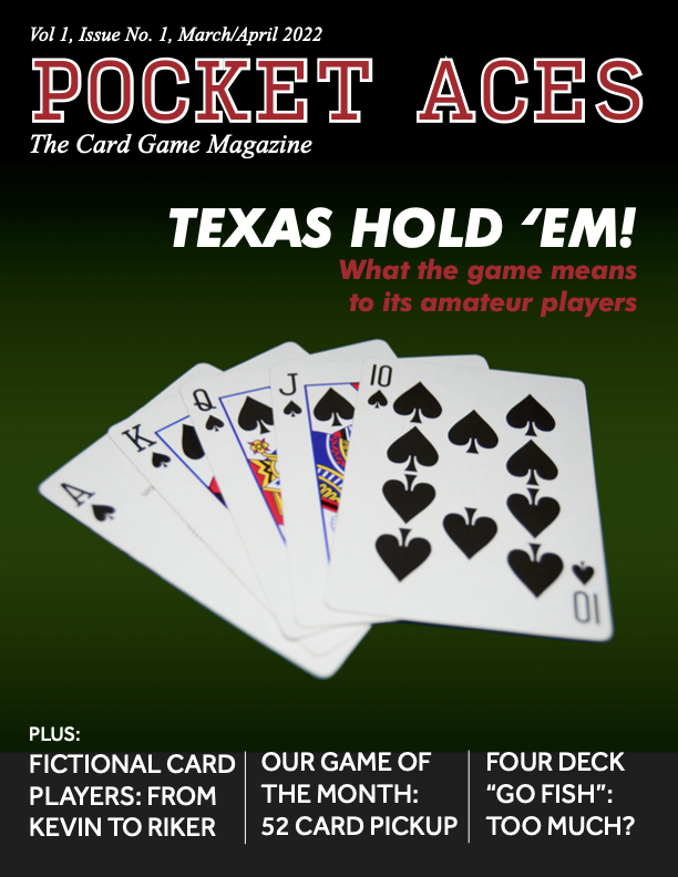 The original idea came to me after seeing magazines such as PC Gamer that were focused on video games, and I thought that a similar type of magazine for card games would be an interesting idea and a good design challenge for me. I play poker with my friends regularly, typically Texas Hold ‘Em, so this was also an idea that I had personal interest in. I also wanted to make the magazine concept as a whole appeal to not just poker players, but to players of other card games as well, even lower-stakes games like Go Fish. This would broaden a potential audience and also made the design process more compelling for me as it allowed me to be more creative with my articles.